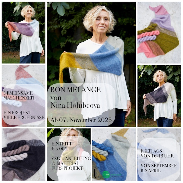 Als nächstes Projekt der GEMEINSAMEN MASCHENZEIT stricken wir das Dreieckstuch BON MELANGE von Nina Holubcova.