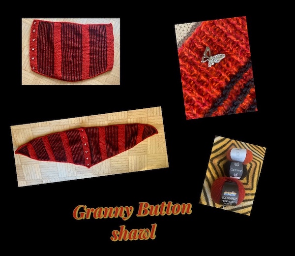 Diesen hübschen GRANNY KATHLEEN'S BUTTONs SHAWL von Joanna Herriott hat Caro mit BABY SILK YAK von Gabo Wool, SCOTLAND2 von Sesia und COOL WOOL von Lana Grossa gestrickt.