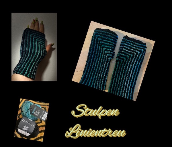 In einem ihrer Strickbücher fand Caro die Anleitung zu den STULPEN LINIENTREU von Babette Ulmer. Diese hat sie mit COOL WOOL von Lana Grossa und ZAUBERBALL CRAZY von Schoppel gestrickt.