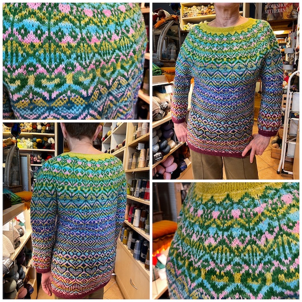 Den knallbunten PULLOVER SENIORITA von Susanne Ederleh hat Regina mit SENIOR und SENIORITA von Schoppel gestrickt. Die Anleitung stammt aus KNIT THE CAT 17.