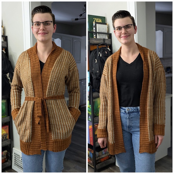 Diesen lässigen CARDIGAN HUTTON von Susan Crawford hat sich Herr Us Nichte Celine mit COOL WOOL BIG VINTAGE von Lana Grossa gestrickt.
