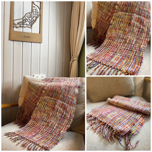 In unterschiedlichen Wollqualitäten der Färbung DAS LANDEI von Herzfasern hat Herr U zum 90. Geburtstag von Lieselotte von Oland diesen SCHAL IN LEINWANDBINDUNG gewebt. Das war eine tolle Überraschung.