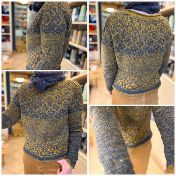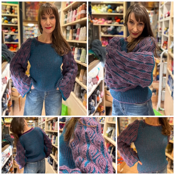 Doris war sofort verliebt in den PULLOVER BROCADE von Elenor Mortensen aus der KNIT THE CAT 17. Mit dem Originalgarn ZAUBERPERLEN HANF von Schoppel hat sie sich diesen nachgestrickt.